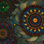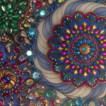 The base image is one of the mandalas that Erin colored. The rest were made using Stable Diffusion’s image-to-image generation. I think it’s fascinating to watch the fade and see how the core image was used to inform the AI-created one. Hence the fade from and back to Erin’s original each time.